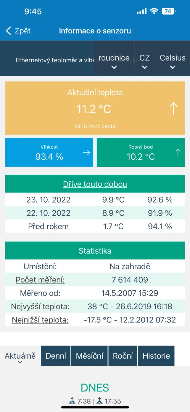 More advanced users interested in data collection often decide whether to go for a solution that they can install on a server at their home. The service offers significant simplification to easily visualize your measured data - you don't have to pay for a server to run the software, install or configure anything complicated, and most importantly, you don't have to worry about it. Any statistics, displays and information from the measured data that you might think of are already taken care of by our service and look great on mobile screens. You have a mobile app with a widget on your phone/tablet as well as a solution on your Windows desktop, email alerts and more innovations are gradually being added thanks to the ongoing development of the service.