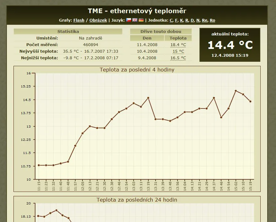Our value visualisation (back then just for temperature) started more than 15 years ago. My dad bought ethernet thermometer TME from Papouch and it was nice to look over internet on outdoor temperature in our place, but what about some data history and graphs of temperature development?