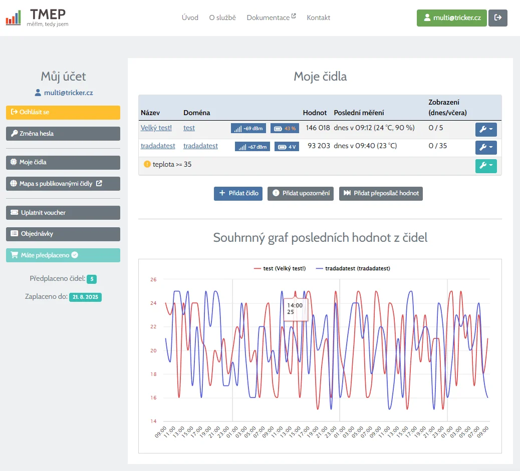 And that's how TMEP application started. Soon it was getting new statistics and functions. After some time, we released it for everybody, but getting it running on web hosting (which you also need to have) is not easy for everybody. That's why tmep.cz was introduced - service, where everybody can easily have their sensors using simple web administration.